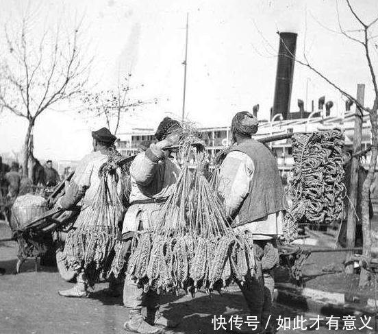 第四张晚清老照片:一群卖草鞋的匠人碰巧偶遇,看到大家都没有卖出去几双,很是难过。