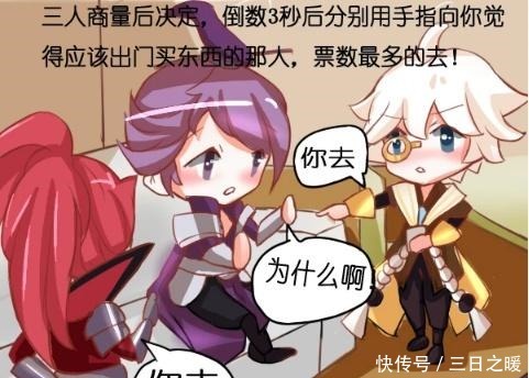 三人说好投票后,刘邦准头看向了韩信,想要让韩信去打包,而此时韩信和张良却异口同声的对着刘邦说道:"刘邦,你去吧!",刘邦一看这个情况,立马大喊道:"你们怎么回事?是不是商量好了要针对我!",张良笑着说道:"我们不是针对你哦,这次打包的任务,还非你莫属不成!",刘邦生气的问道:"为什么啊?"