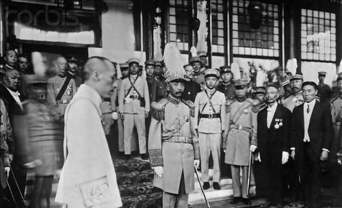图:张作霖被任命为中华民国海陆军大元帅的就职仪式。1927年6月18日,张作霖在北京就任北洋军政府陆海军大元帅,代表中华民国行使统治权,成为国家最高统治者,并组成北洋军阀统治时期第32届、也是最后一届内阁,成为北洋军政权最后一个统治者。