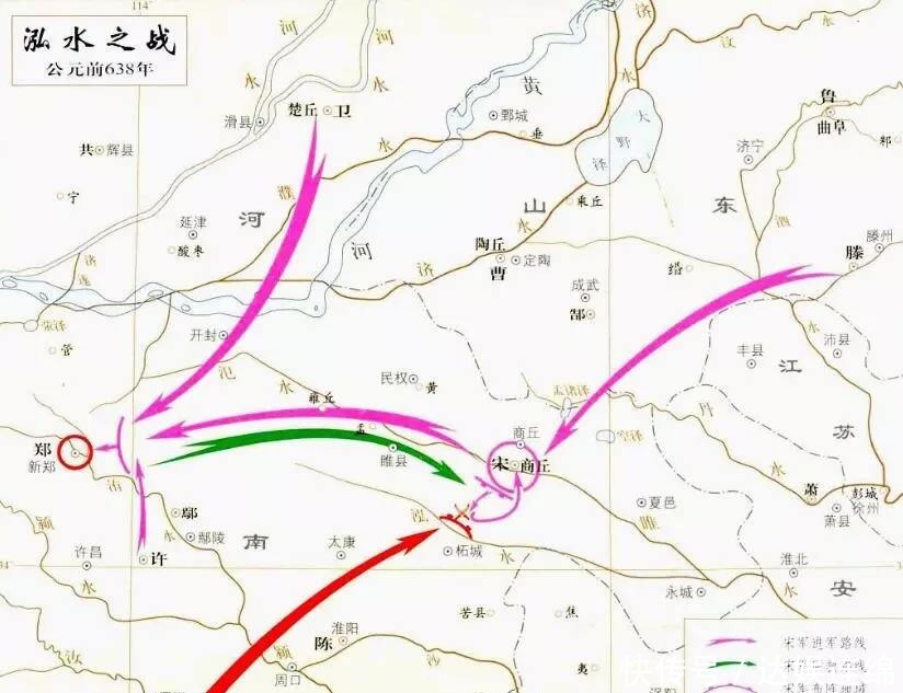 宋襄公雄心勃勃,想继承齐桓公的霸业,与楚国争霸,一度为楚国所拘。公元前638年,宋襄公讨伐郑国,与救郑的楚兵展开泓水之战。