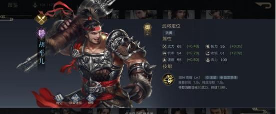 吕布单点爆发,典韦愈战愈勇,周泰奋力抗伤,那么就差一个能为典韦、周泰两位前排保驾护航的猛将了,胡车儿则能做到这一点。胡车儿的技能潜帐盗戟可以夺取当前目标的武力值,增强自身,损害对手,这个控场手段看似微不足道,却为两名需要支出大量兵力作为代价的大将们起到了残血翻盘的妙用~