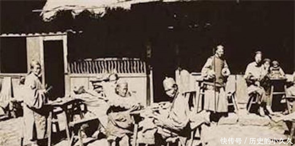 一百多年前清朝的刑罚老照片:颈枷,这是最常见的刑具。图为押解期间囚犯休息。
