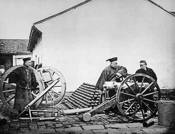 中国第一个现代武库,南京报恩寺附近军械库。炮弹堆在地上,看上去好像还是实心弹,而同时期的西方国家军火已经使用开花弹,有了完整的火炮理论体系,足以见识当时的落后。