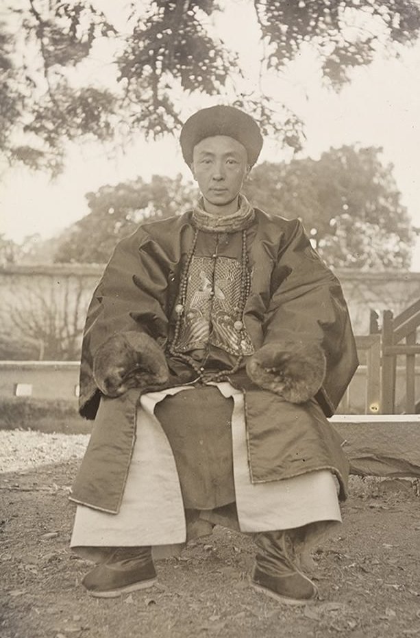 此人身穿鹌鹑补服,应为八品文官(百姓口中的"芝麻官"),我们推测是漳浦县县丞。县丞辅佐知县处理事务,一般由举人、恩贡、拔贡、副贡考取,经皇帝任命,主管全县文书档案、仓库、粮马、征税等。