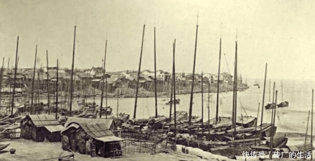 历史图片:汉口江边码头的一角有很多船。