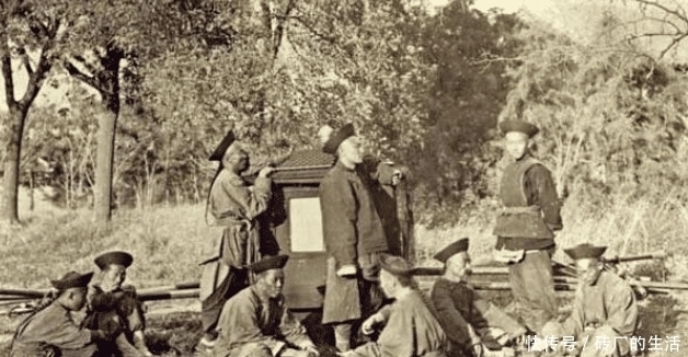 历史图片:官人的轿子和抬轿者。