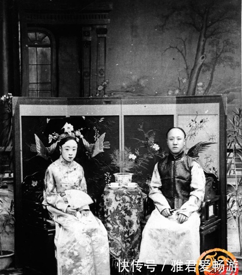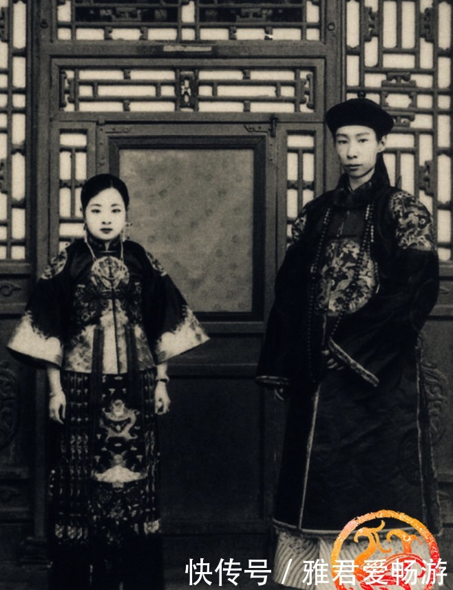 这是末代摄政王和他的福晋。摄政王的老婆是荣禄的女儿,两个人是由慈禧亲自赐的婚,他俩一个人是要臣的女儿,一个是皇亲国戚,他俩婚礼的规模都能赶得上皇上的了。因为摄政王福晋的性格特别刚烈,在1921年和瑾妃吵架之后,被训了一顿,人家转头回家就吃鸦片死了。