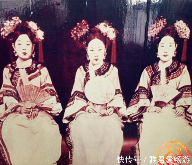 这张照片是清末时期醇亲王的三个侧福晋。在中间坐的是老二刘佳氏,她生下了载沣、载洵和载涛三兄弟,因此得到了醇亲王的宠爱,继而在王府里的地位也大大提升了。其他两个女子就是老大颜扎氏和老三李佳氏。
