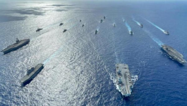 央广军事10月11日报道称,美国、英国、日本、荷兰、加拿大和新西兰等6个国家的17艘军舰,在南海及其周边海域举行演习,包括美国的“卡尔·文森”号和“里根”号航母、英国的“伊丽莎白女王”号航母等舰船参加了演习,演习持续到10月10日。