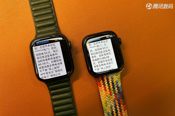 屏幕可视面积的增加带来了一个明显的改变——对角线尺寸变得更长了,这让Series 7的屏幕尺寸从上一代的40/44mm增长到了41/45mm,在整体模具没有明显变化的前提下,这一代的Apple Watch要比上一代稍重,41mm的版本重了1.5g,45mm的版本重了2.3g。