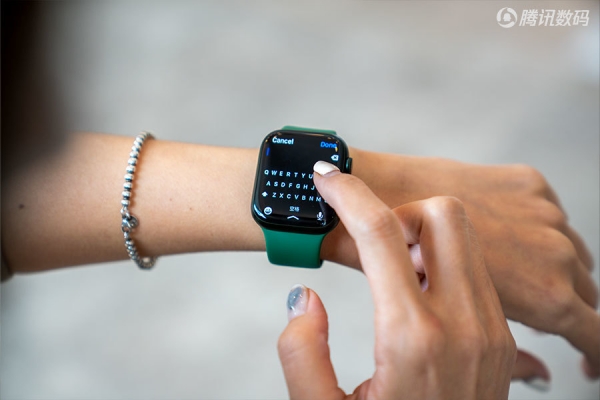 在Series 6之前,Apple Watch更多的操作依赖于手指的点按、短距离滑动和表冠的按压和旋转,而在屏幕增大之后的Series 7上,苹果将全键盘引入到Apple Watch中来。