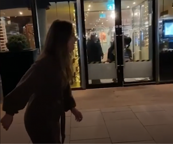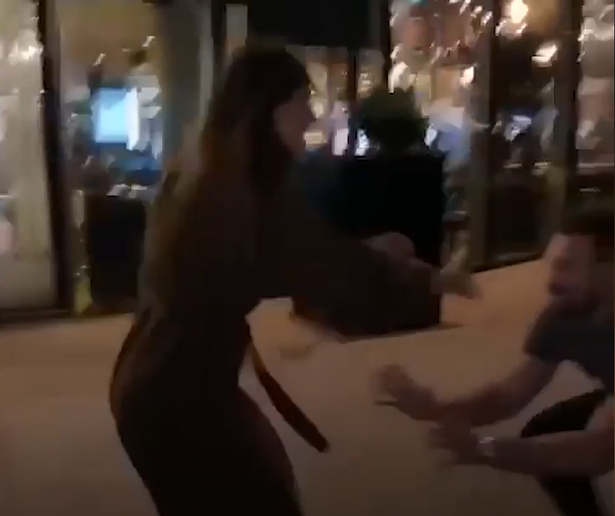这对情侣从酒吧出来后心血来潮,想模仿一下经典电影《辣身舞》里面帕特里克·斯威兹(Patrick Swayze)和詹妮弗·格雷(Jennifer Grey)的舞蹈动作。