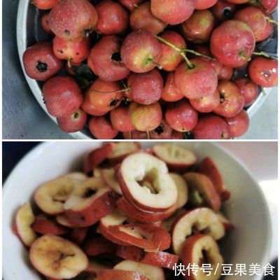 1、山楂用盐水泡洗干净,切开去籽,再切片,泡在盐水里以免氧化变黑