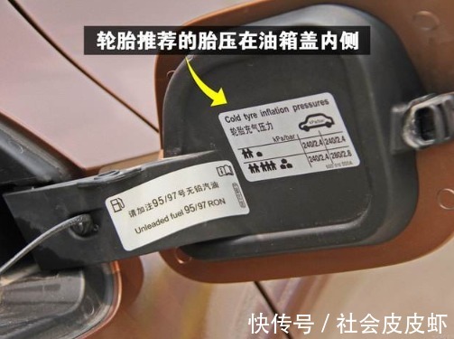 二、轮胎推荐胎压。这种汽车质重都会不一样,所以汽车的胎压也是不一样的,毕竟在不同的天气胎压也是不一样的,很多的车主不知道自己的汽车胎压调到多少才是合适的,其实在轮胎的推荐胎压就在油箱内侧就可以看到,上面介绍的十分完全,你的汽车应该调到多少,这样的话对于新手就是非常的简单,不用自己开车自己觉得多少好开,就调到多少,现在知道也不是非常的晚。