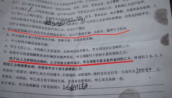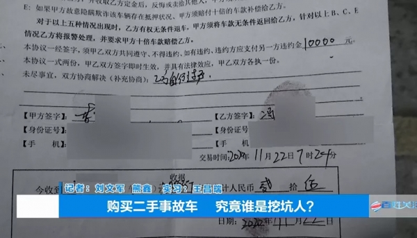 看着车辆外观没有任何瑕疵,价格也能接受,于是冯先生就决定购买,随后和车主李女士签订了购车合同。合同约定,李女士如果故意隐瞒车辆真实信息,比如泡水、有重大事故、火烧车等情况,冯先生有权退车,李女士必须无条件返还车款。有了合同约定,就算是给买卖双方上了一道保险,冯先生交了全款后把车开走。不料到今年八月,冯先生准备把这辆车卖掉的时候,问题出现了。