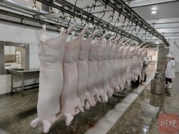 江油市华丰肉联厂机械化屠宰生产车间内屠宰现场(资料图 四川省农业农村厅供图)今年,四川德康农牧食品集团股份有限公司在宜宾市、眉山市分别计划布局年屠宰能力300万头、200万头。而另一家上市公司龙大肉食品股份有限公司表示,公司与成都佳享食品有限公司携手,在成都蒲江县布局生猪屠宰产能。