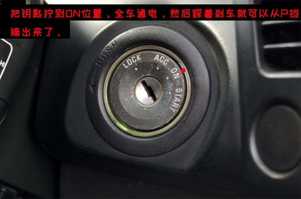 其实方法很简单,对于机械钥匙启动的车来说可以把钥匙拧到ON位置,给全车通电,然后踩着刹车就可以从P挡摘出来了。