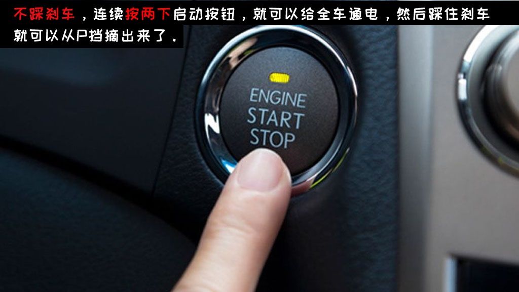 对于一键启动的车来说你可以不踩刹车,连着按两次启动按钮,此时也相当于机械钥匙拧到ON的效果,也是全车通电,然后同样踩着刹车就可以从P挡摘出来了。因为P挡有驻车作用,解除P挡后如果你没拉手刹那车辆就有意外移动的可能,所以厂家就设定了这样的逻辑:想摘出P挡必须踩着刹车,这样就算没拉手刹还有刹车呢,不至于溜车。而具体实现方法就是在档杆下面装一个电磁阀,挂入P挡后电磁阀就把档杆锁住,踩下刹车后电磁阀自动解锁。但是电磁阀必须在全车通电的情况下才能工作,所以必须先打开点火开关给全车供电然后才能踩着刹车解除P挡。