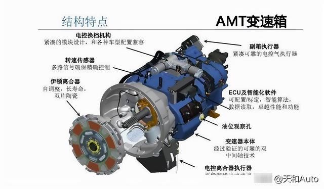 AMT指的是电控机械自动变速器,其基础就是手动变速器,连齿轮箱结构都一样,只是通过电机控制离合器和电磁阀控制换挡;所以离合器的特点也就不用赘述了,其使用寿命理论上会比手动变速器高一些。因为AMT的换挡积极性很低,行驶中没有过多的换挡操作,离合器的半联动频率低则使用寿命足够长;缺点是换挡速度和手动挡一样慢,换挡的顿挫感总会比较明显。