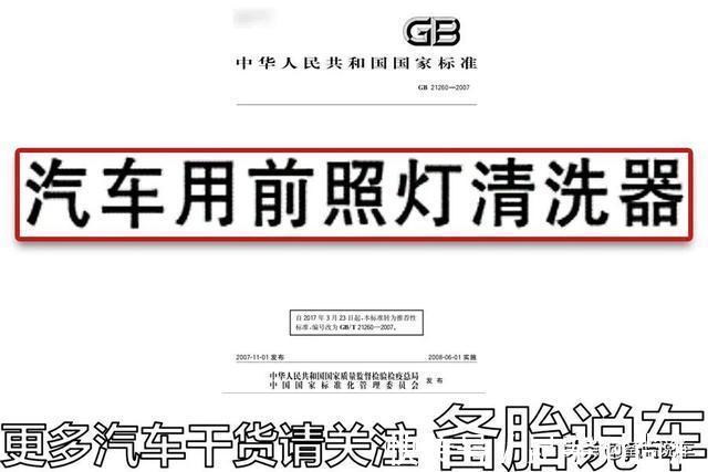 国家标准GB/T 21260-2007《汽车用前照灯清洗器》,里面规定。