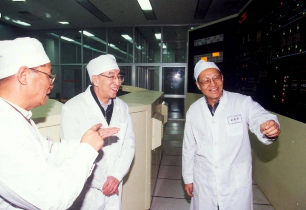 2000年12月1日,王大中(中)、吴宗鑫(右)在清华大学10兆瓦高温气冷堆临界现场