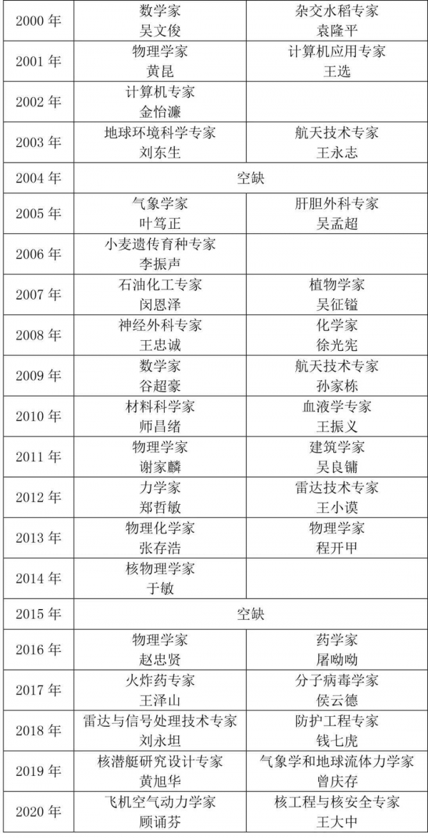 国家最高科技奖是中国科技界的最高荣誉,于1999年设立、2000年度首次评选颁奖,每年授予人数不超过2名。 除2004、2015年度空缺外,已有35位著名科技专家获此殊荣。