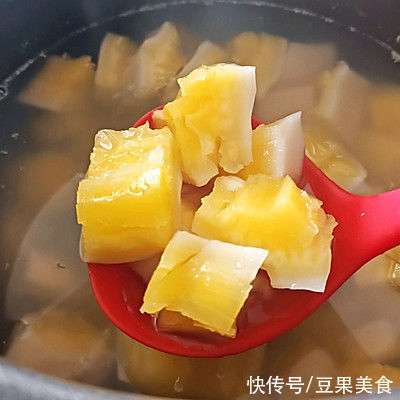 5、加上黄片糖(冰糖、白糖也可以的,跟据自己口味下哈),煮至糖完全融化