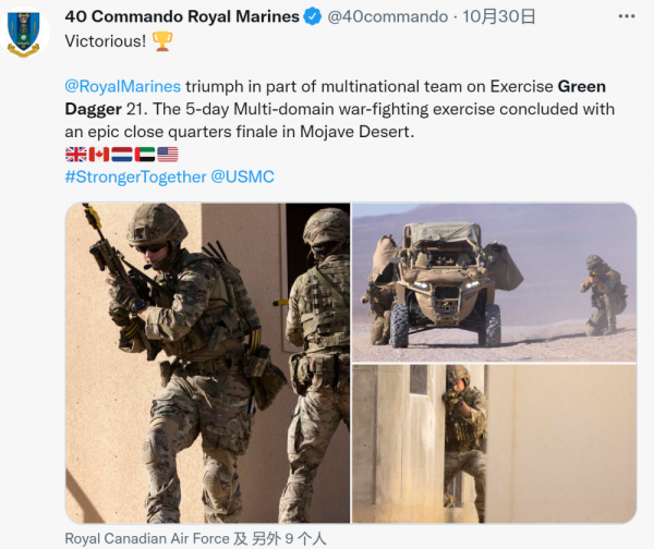 在《每日电讯报》的报道传播开后,美国海军陆战队的官方推特账号发布了一条消息,称美国海军陆战队有幸与英国海军陆战队一起训练,并指出联合训练使所有参与者受益。