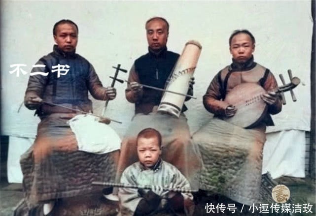 照片拍摄于清末时期,正在演奏乐器的乐师,他们以在酒馆中表演而生活,平时也也会接一些婚庆的活,以填补家用。