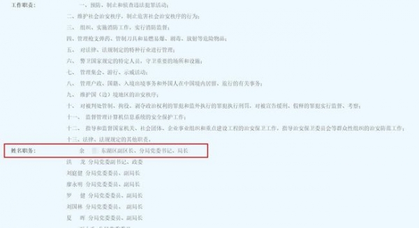 另据中国青年网《青蜂侠》视频栏目称,在南昌市东湖区人民政府官网上,南昌市公安局东湖分局机构职能介绍显示,东湖区副区长、分局党委书记、局长与该女子口中姓名读音相似。