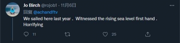 “我们去年航行到了这,亲眼见证了海平面上升,很可怕。”