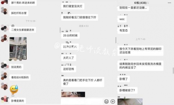 有学生指出,陌生男子是先去了7栋,拿内裤捂着脸,再进来6栋。