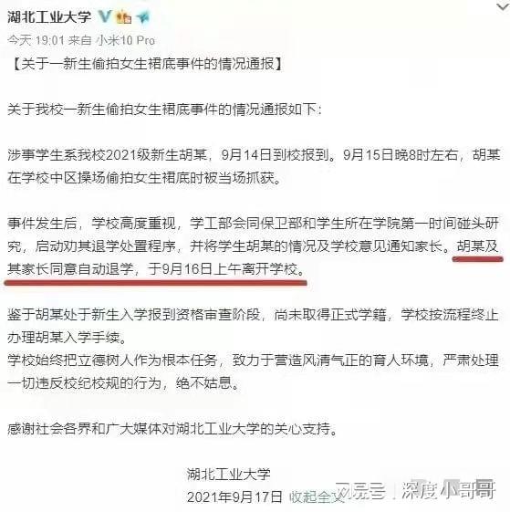 2021年9月15日,在湖北工业大学一名男生在刚刚入学一天之后被退学!