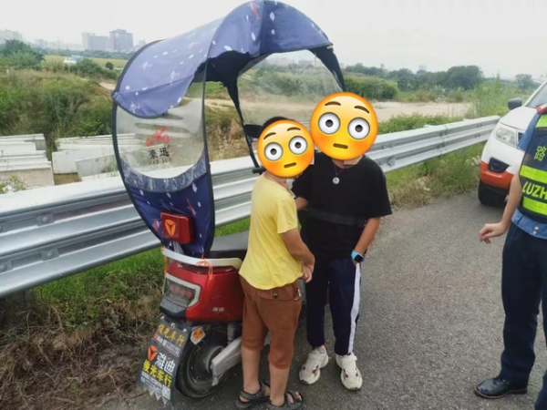 小学生骑电动车上高速,交警紧急出警