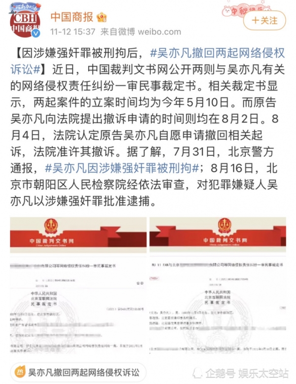 许多网友认为吴亦凡曾经的完美人设已经荡然无存,所以也不需要就社会形象再进行维权了,还不如撤销这些诉讼。