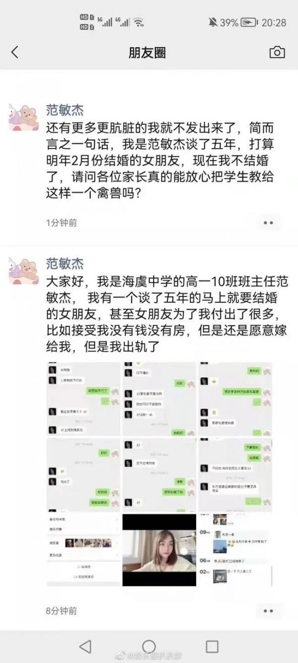 2、还有更多更肮脏的我就不发出来了,简而言之一句话,我是范敏杰谈了五年,打算明年2月份结婚的女朋友,现在我不结婚了,请问各位家长真的能放心把学生交给这样一个禽兽吗?