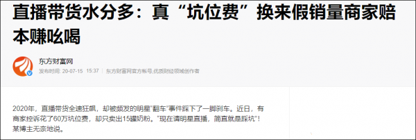 在直播带货野蛮生长的时候,曾有商家控诉,60万坑位费只卖出去15罐奶粉。