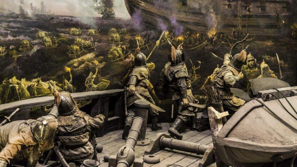 兵力处于严重劣势且弹药给养严重不足的3000明军,冷静地结阵、布防,密集的战车环绕成工事,冰冷的佛朗机炮口指向敌人的前沿。激烈的战斗持续了一天一夜,占据地利优势和兵力绝对优势的两万日军,竟然死活冲不开明军的防御,于是日军总司令决定拼消耗。