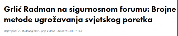 克罗地亚外长拉德曼18日前往加拿大参加及年度举行的“哈利法克斯”国际安全论坛(HFX)。在论坛会议举行间隙(21日),他谈到了自己对于地缘政治和国际秩序的看法。
