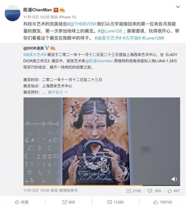 近日,在上海举办的《迪奥与艺术》展览中,陈漫的一幅摄影作品引起热议: