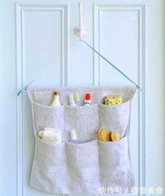 挂在门后的收纳袋,多缝几条毛巾就够了,想要放长一点的东西记得缝的深一点。