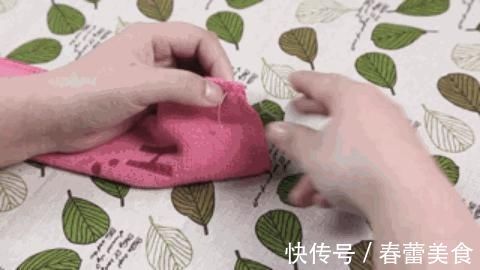 2、将剪出的长方形对折,然后缝起起来。