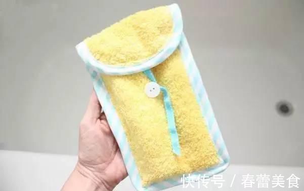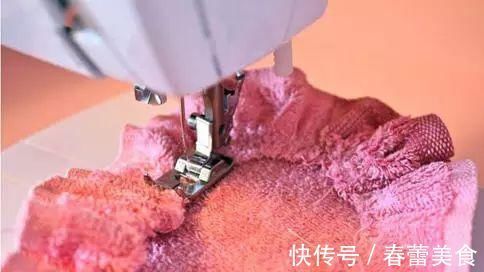 然后将窄条绕圈缝在圆布上面,柔软又吸水的浴巾就能用了 ~