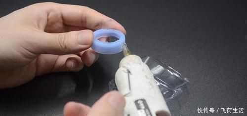 接着在塑料瓶的瓶盖侧边涂抹上一些热熔胶,并且将它粘在塑料瓶的内侧即可。