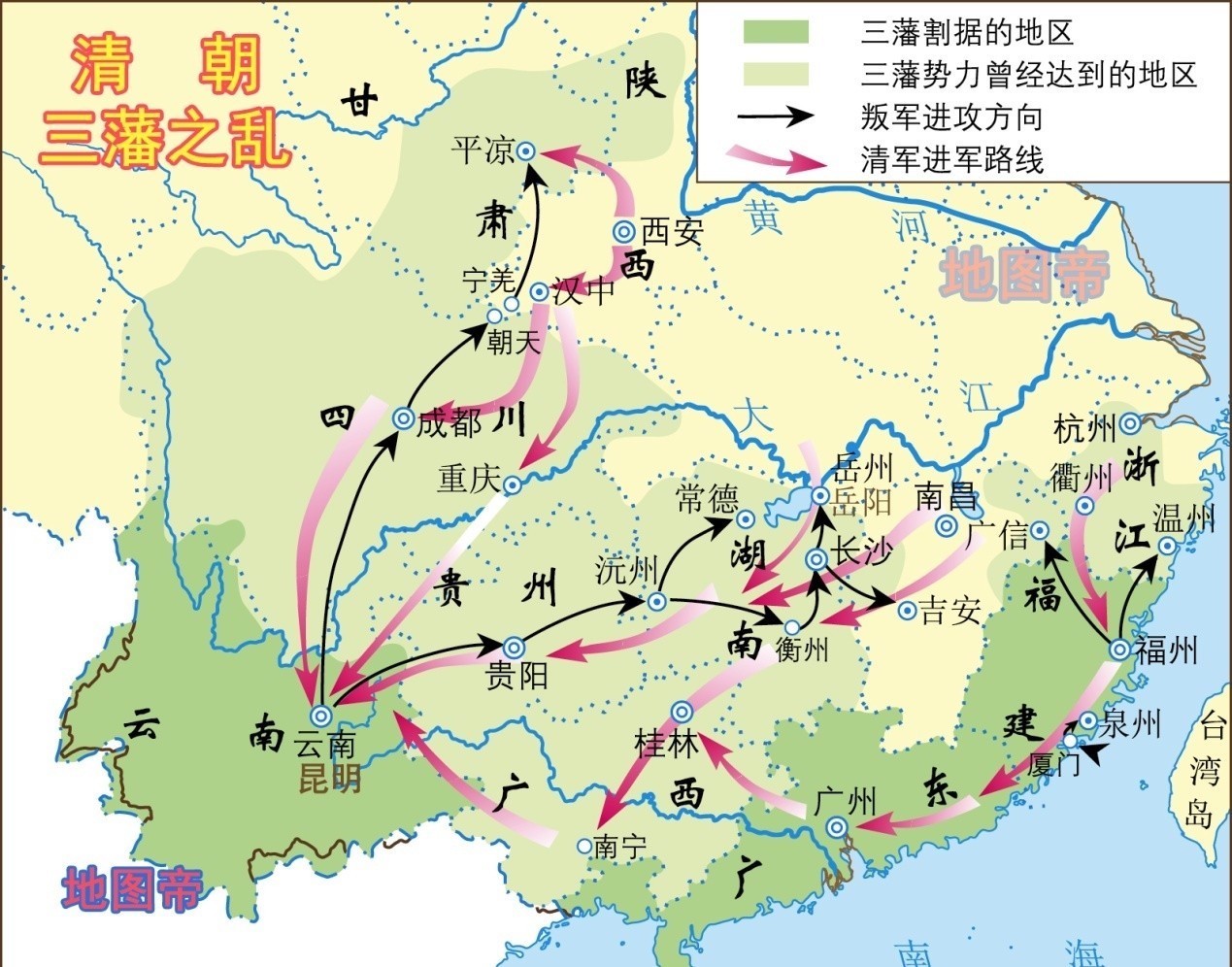 1681年,清军攻入昆明,吴世璠自杀,三藩之乱结束。康熙经过八年的战争,才最终平定三藩,消除了藩王割据,避免了可能出现的分裂局面。