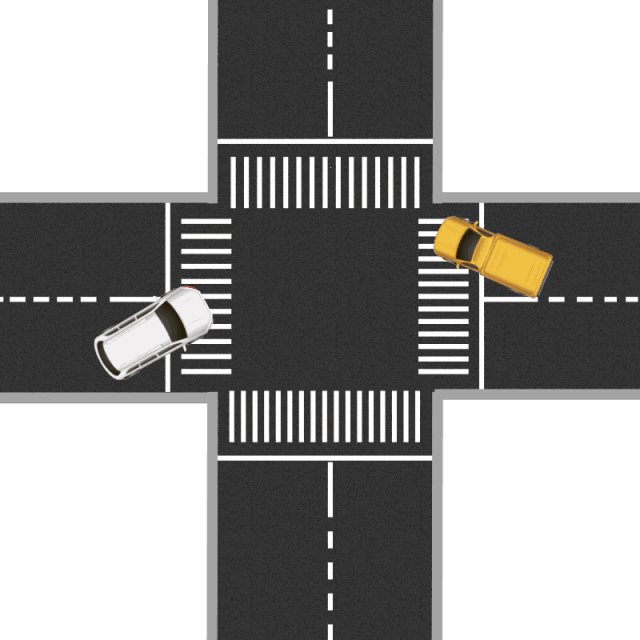 相对于对向行驶的车辆来说,一辆车向右转,另一辆车向左转,两辆车会驶入同一个路口。在这种情况下,右转的车辆应让左转的车先行。