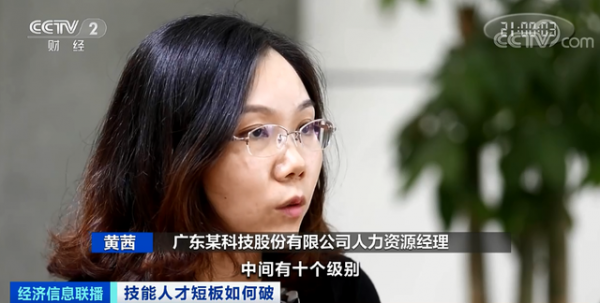 广东省某科技股份有限公司人力资源经理 黄茜:从技工到技师,中间有十个级别。最高的级别工资可以等同于高级工程师,或者直接达到职能经理水平,一年有三五十万的收入。