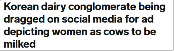 近日,韩国市场份额排名第一的牛奶生产商“首尔牛奶”在视频网站Youtube上发布的一则广告引发争议。