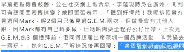 记者也采访了邓紫棋的好友李蕴,问她有没有听说过邓紫棋的事情?她承认自己已经好久没有见到魏俊杰了,但是对方自己也有工作,不可能整天都和邓紫棋在一起。然后,她说要了解情况再回复。