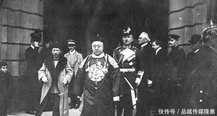 图:筹办海军大臣爱新觉罗·载洵访问德国时的情景,图左一为时任驻德钦差大臣荫昌。爱新觉罗·载洵是醇亲王奕譞第六子,光绪帝的弟弟,之后出继为瑞郡王奕志的后人。1909年载洵赴欧美考察海军,1912年1月,与载涛等组织宗社党。辛亥革命后在北京、天津闲居。